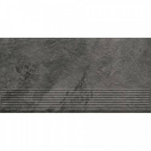 Ступень клинкерная плитка матовая Ardis Dark Stopnica Prosta Struktura Mat 60x30 8.5мм черный Paradyz